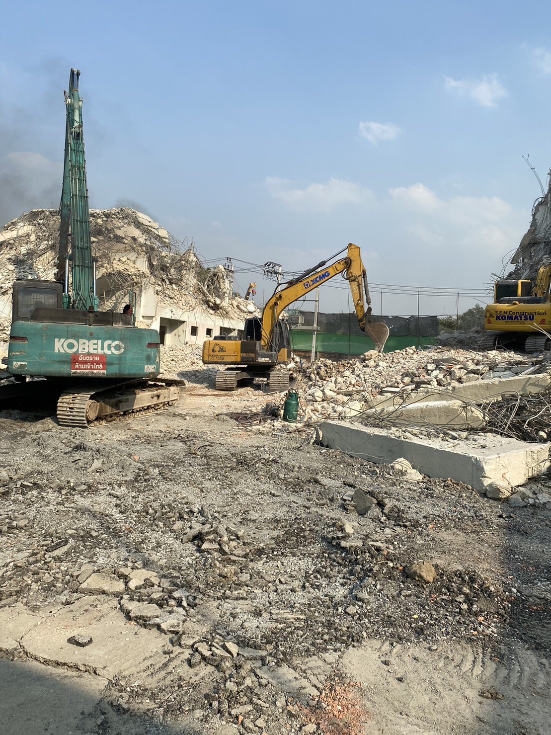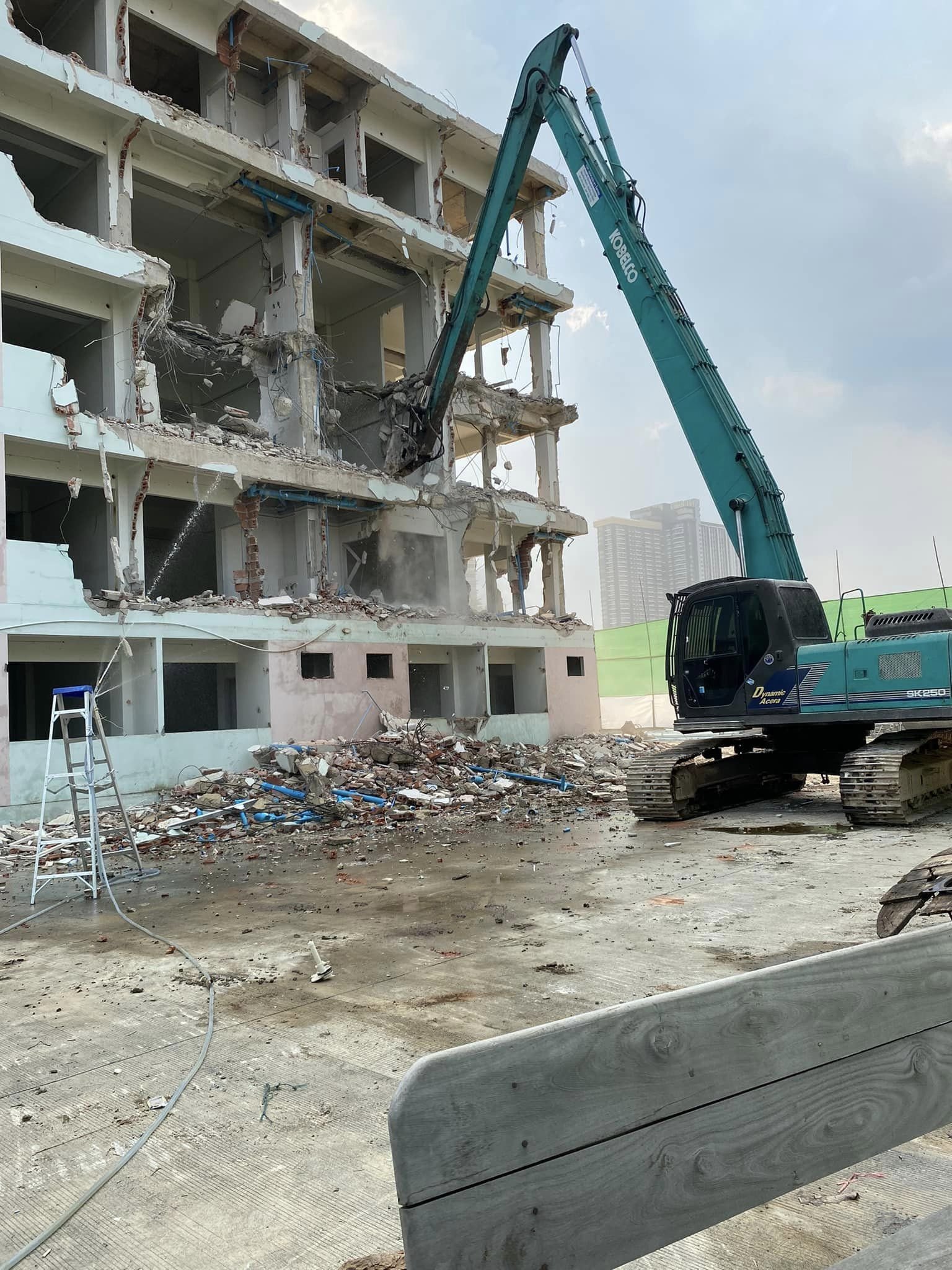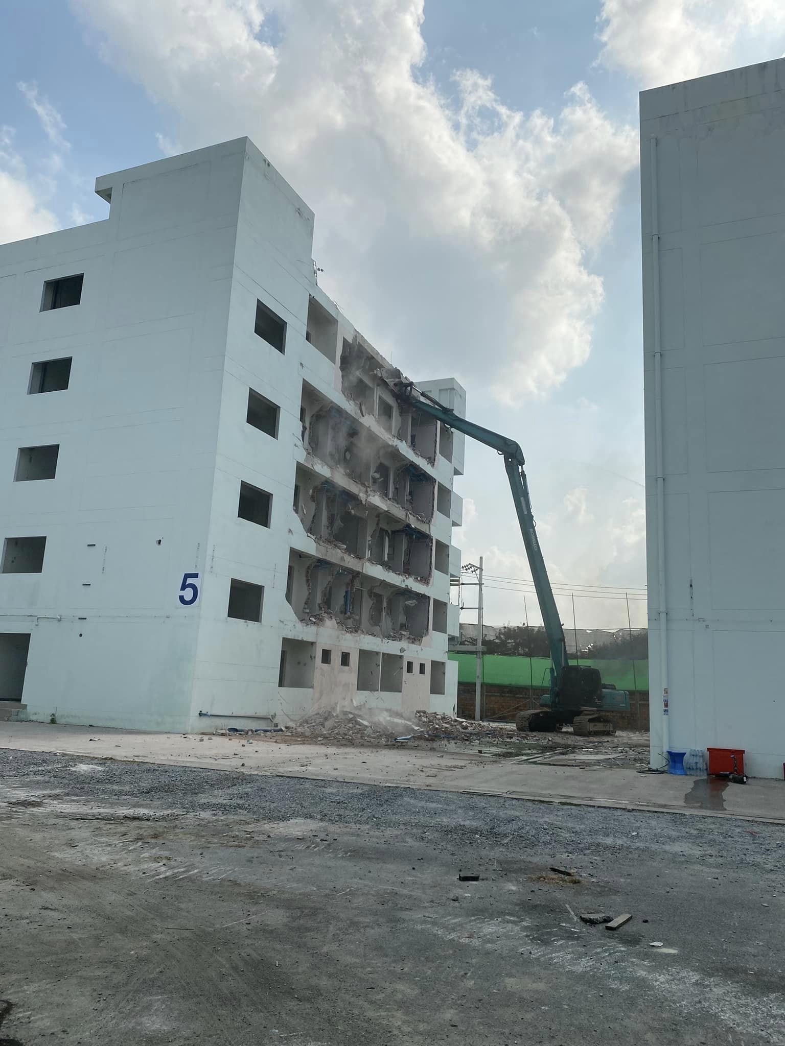 Use a special large backhoe for demolition.