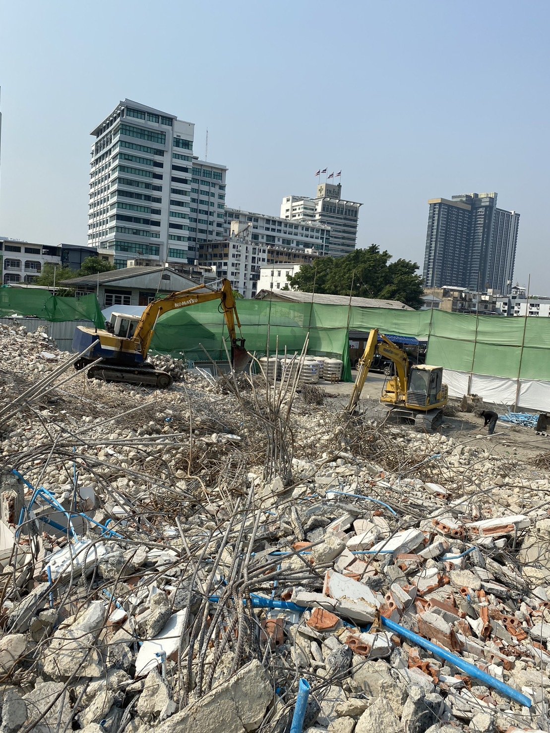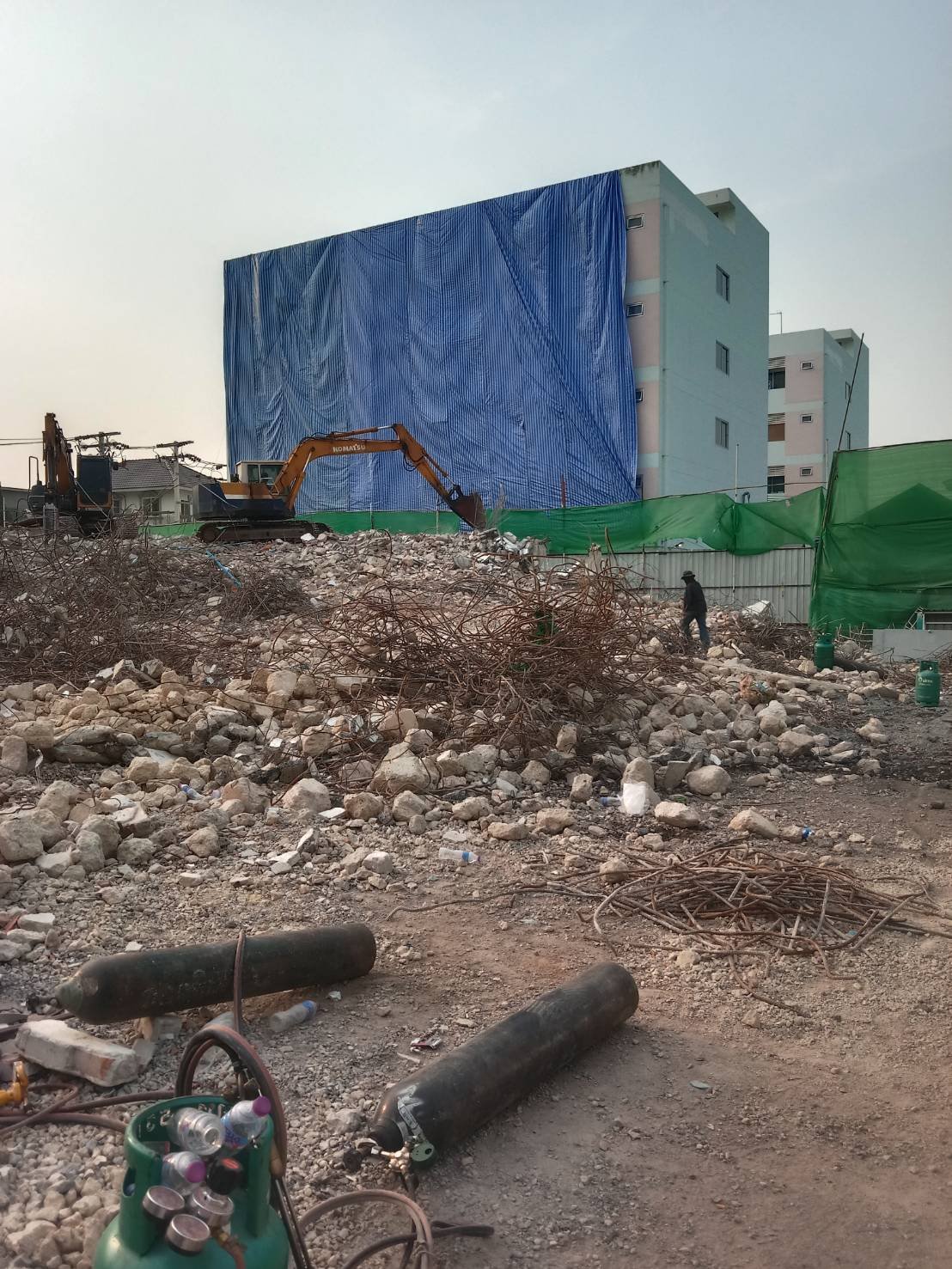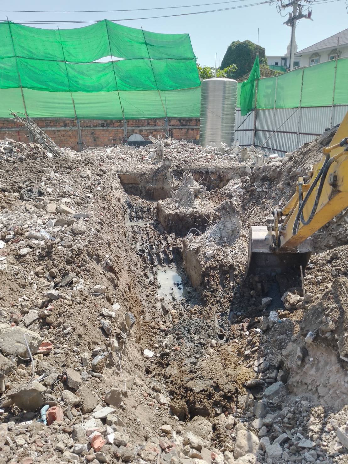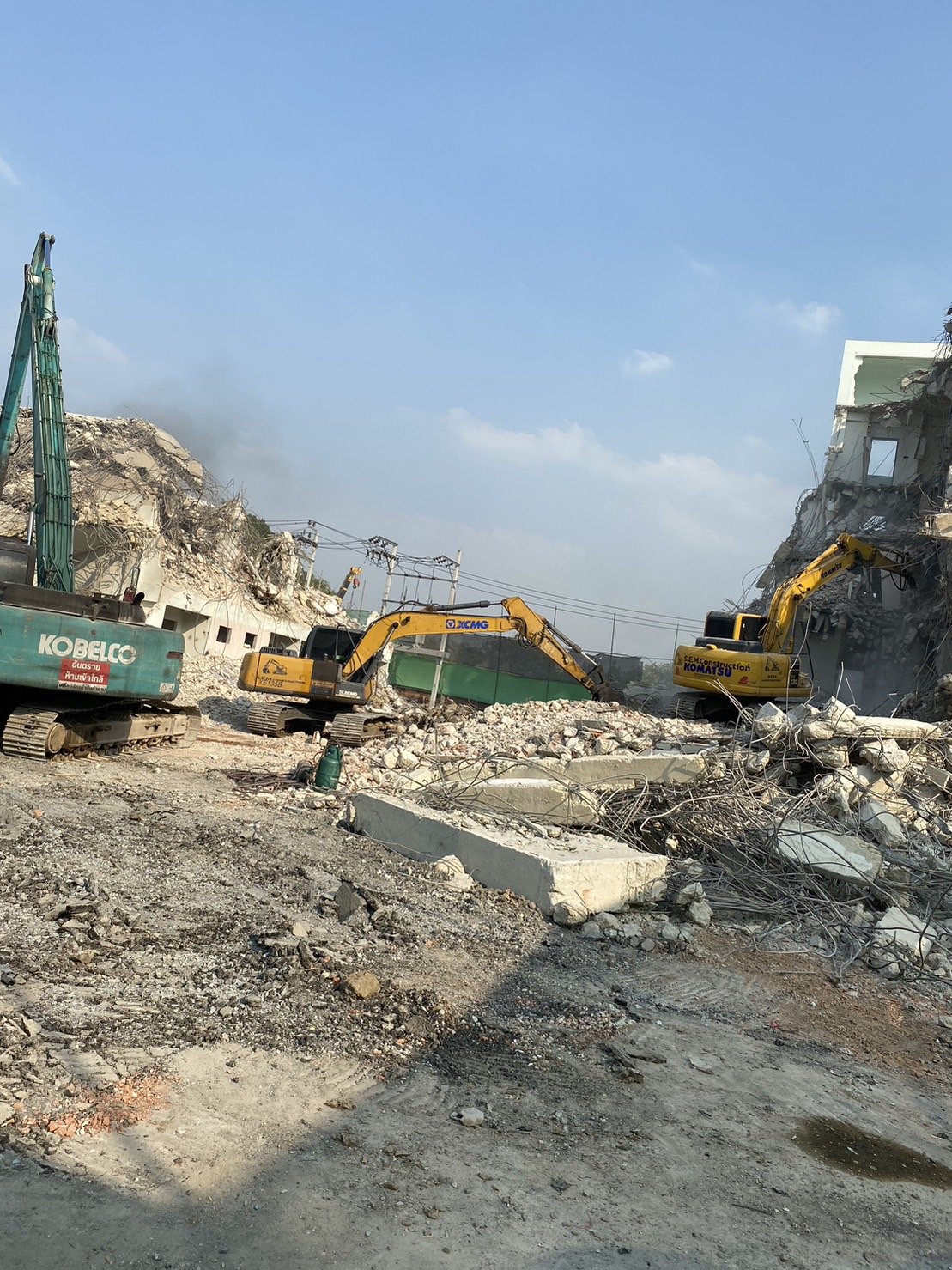 Use a special large backhoe for demolition.
