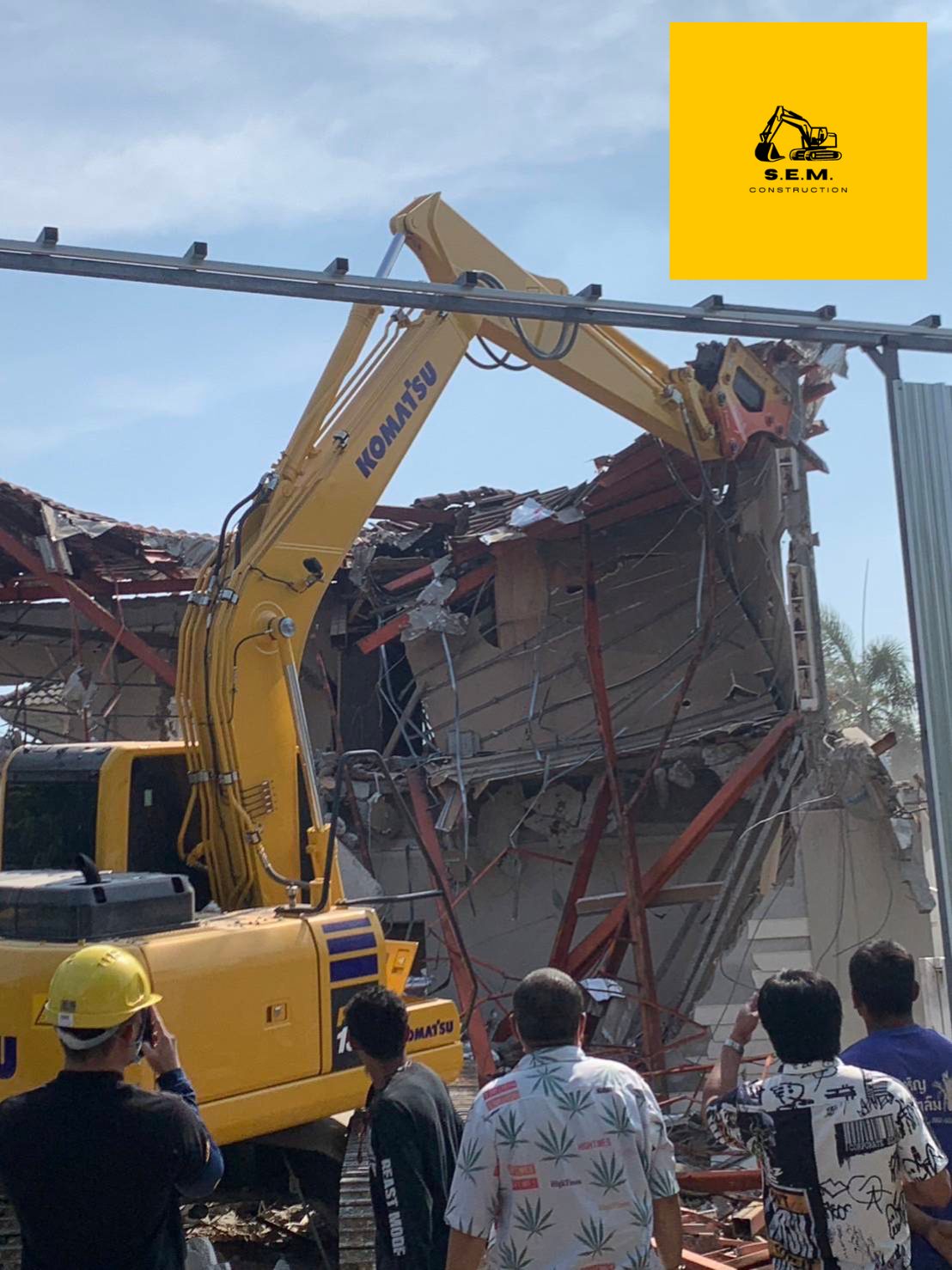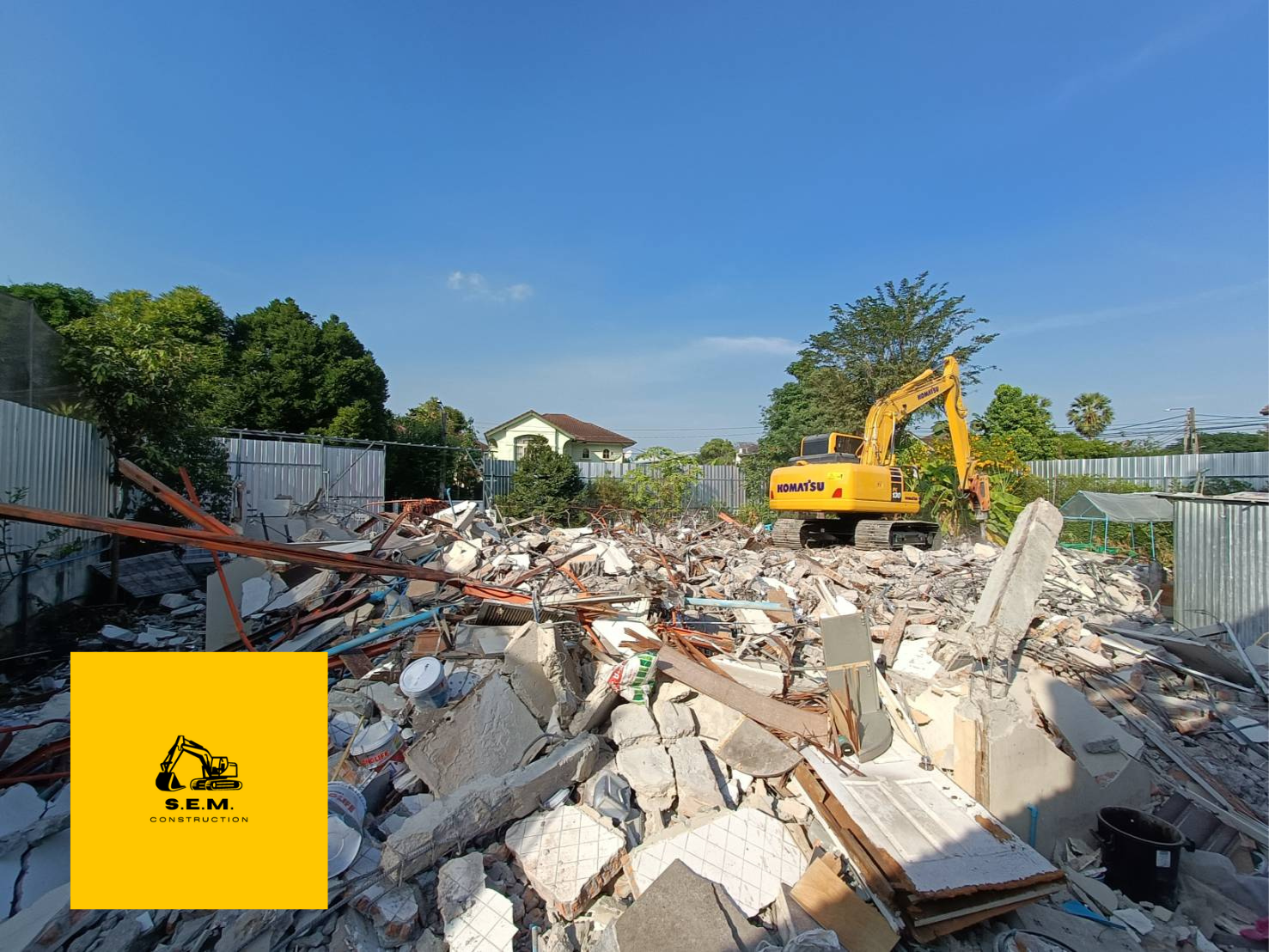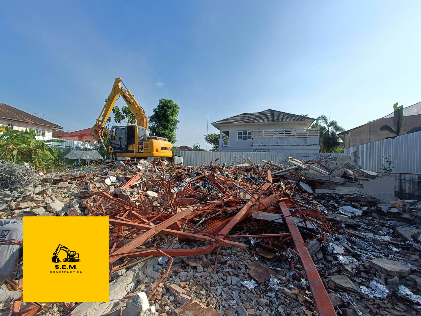 Komatsu PC130-10M0 พร้อมหัวกระแทก Asada รุ่น A130 แบบหัวข้าง ของเรา กำลังทะลวงบ้านหลังใหญ่ 2 ชั้น