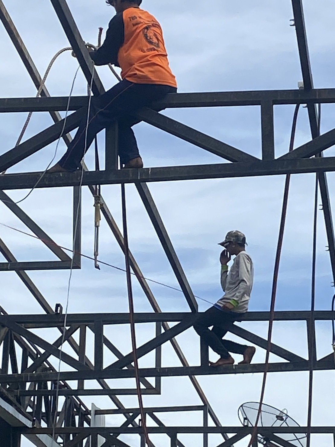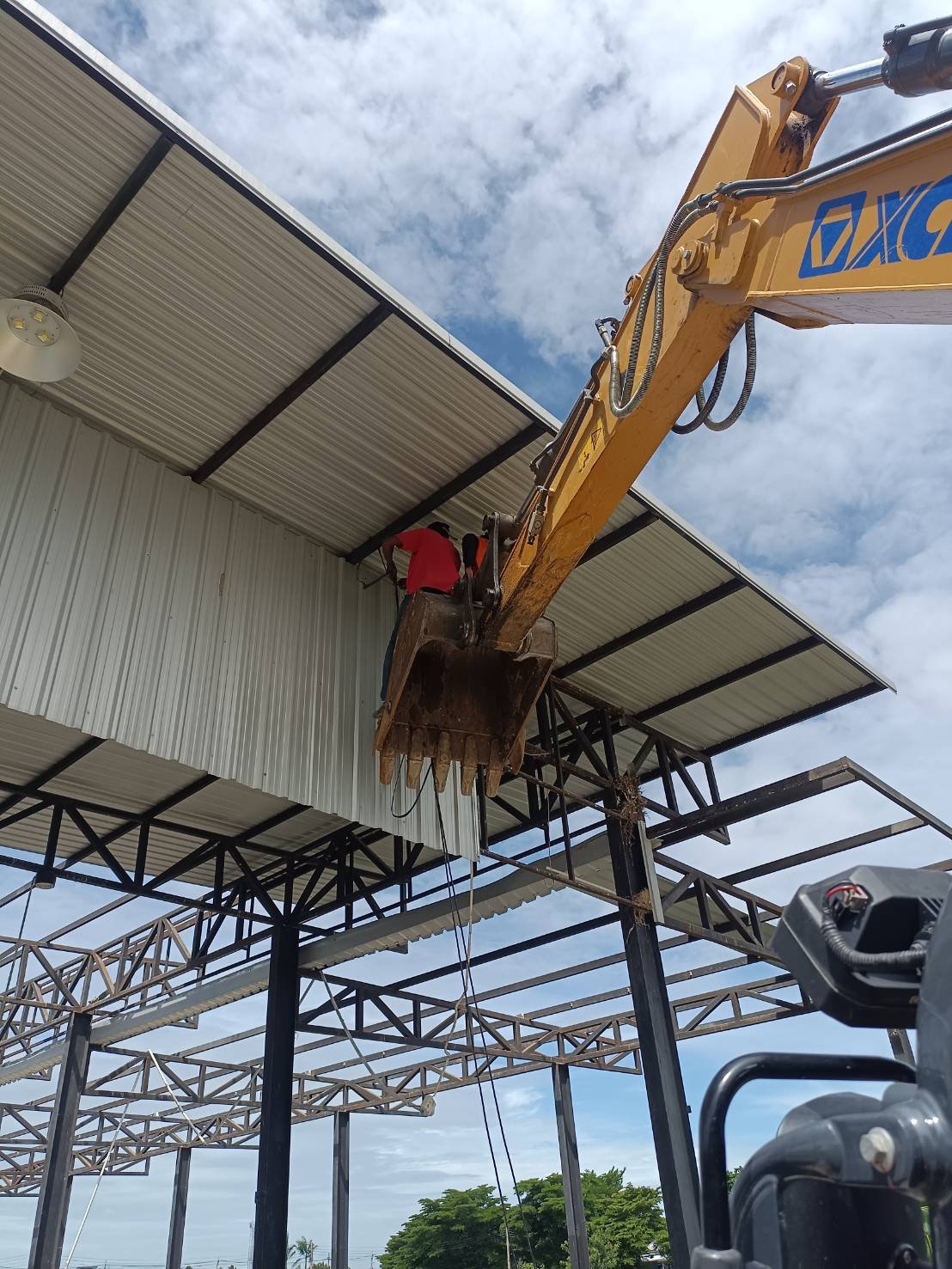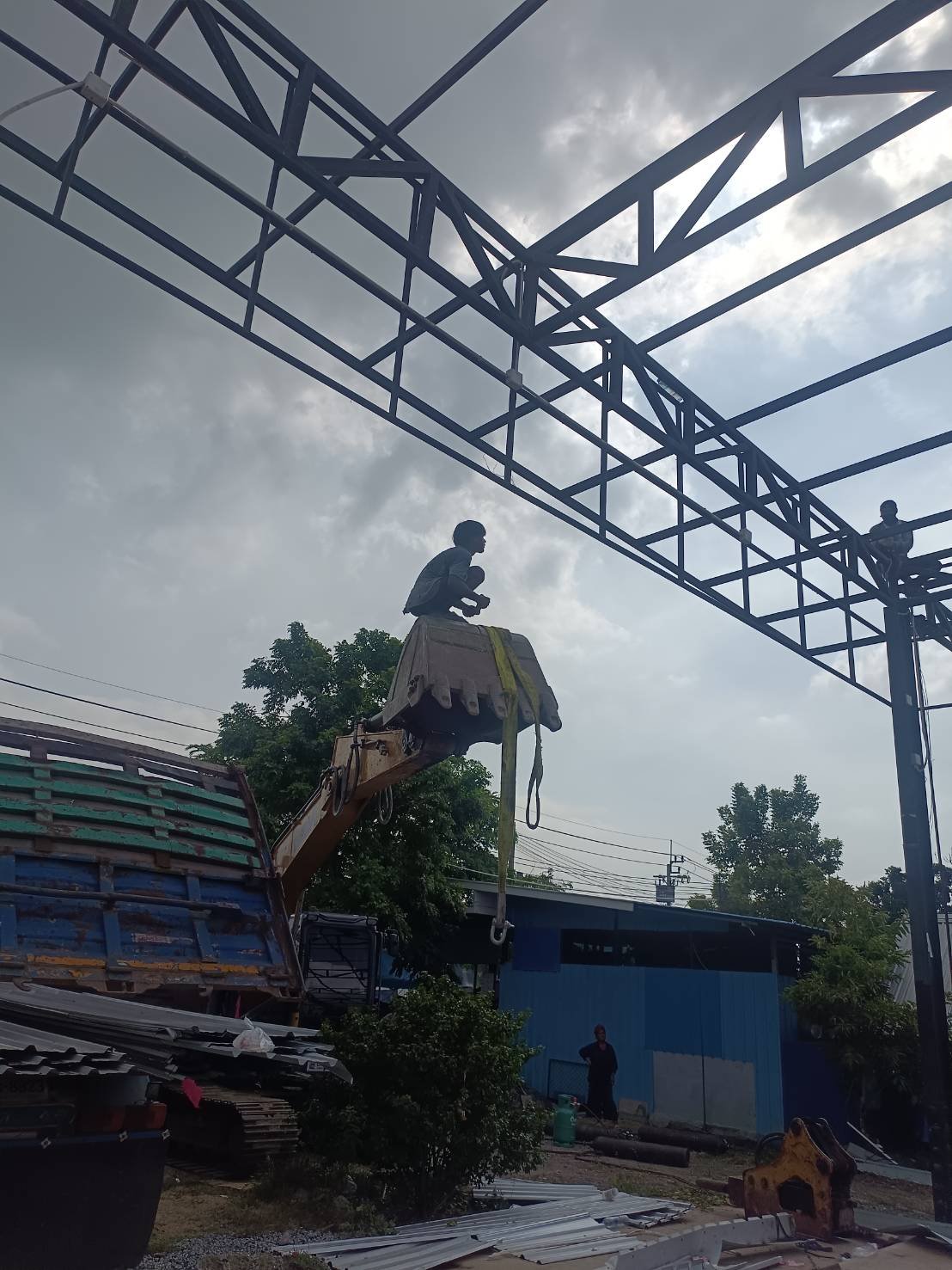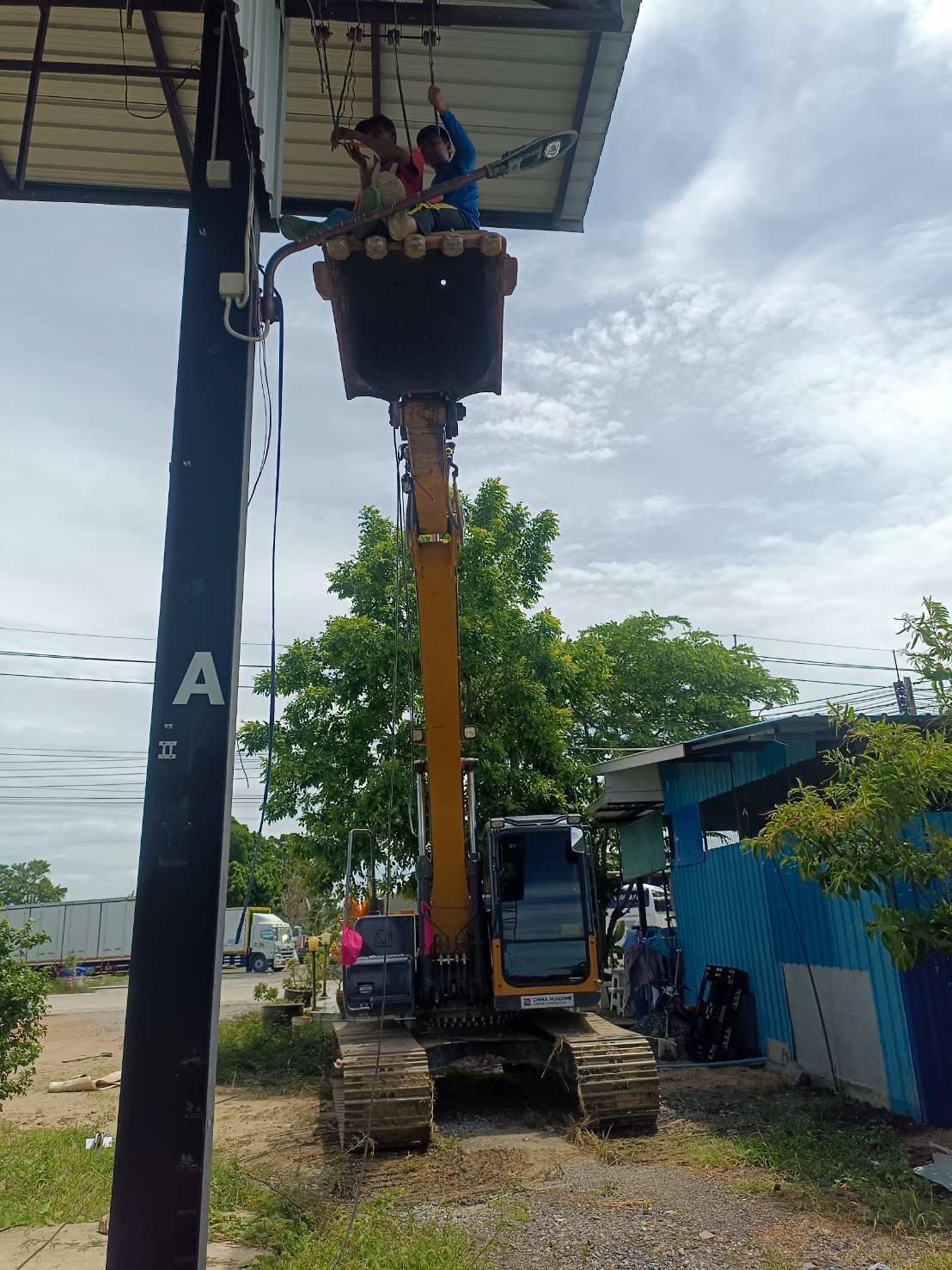 อีกหนึ่งหน้าที่หลักของแบคโฮเราในงานนี้คือการพาพนักงานขึ้นไปทำงานบนที่สูง
